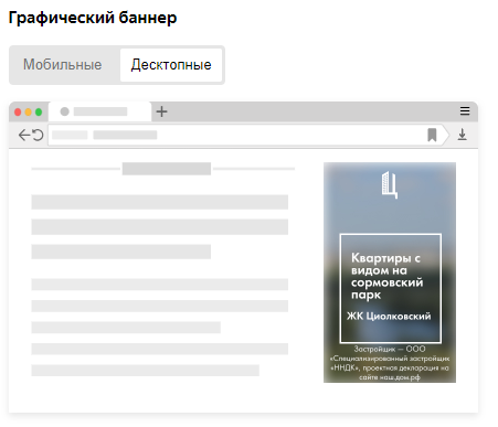 Чтобы решить эти задачи, мы предложили использовать рекламные источники и форматы в рамках единого пользовательского пути (который разработали на этапе анализа). Сначала пользователь знакомится с жилым комплексом; потом его догоняет ретаргетинг: различные форматы рассказывают о преимуществах ЖК. Впоследствии, если пользователь не оставил заявку, ему показывается реклама с планировками. И последний этап - это финансовые условия приобретения жилья в ЖК «Циолковский».