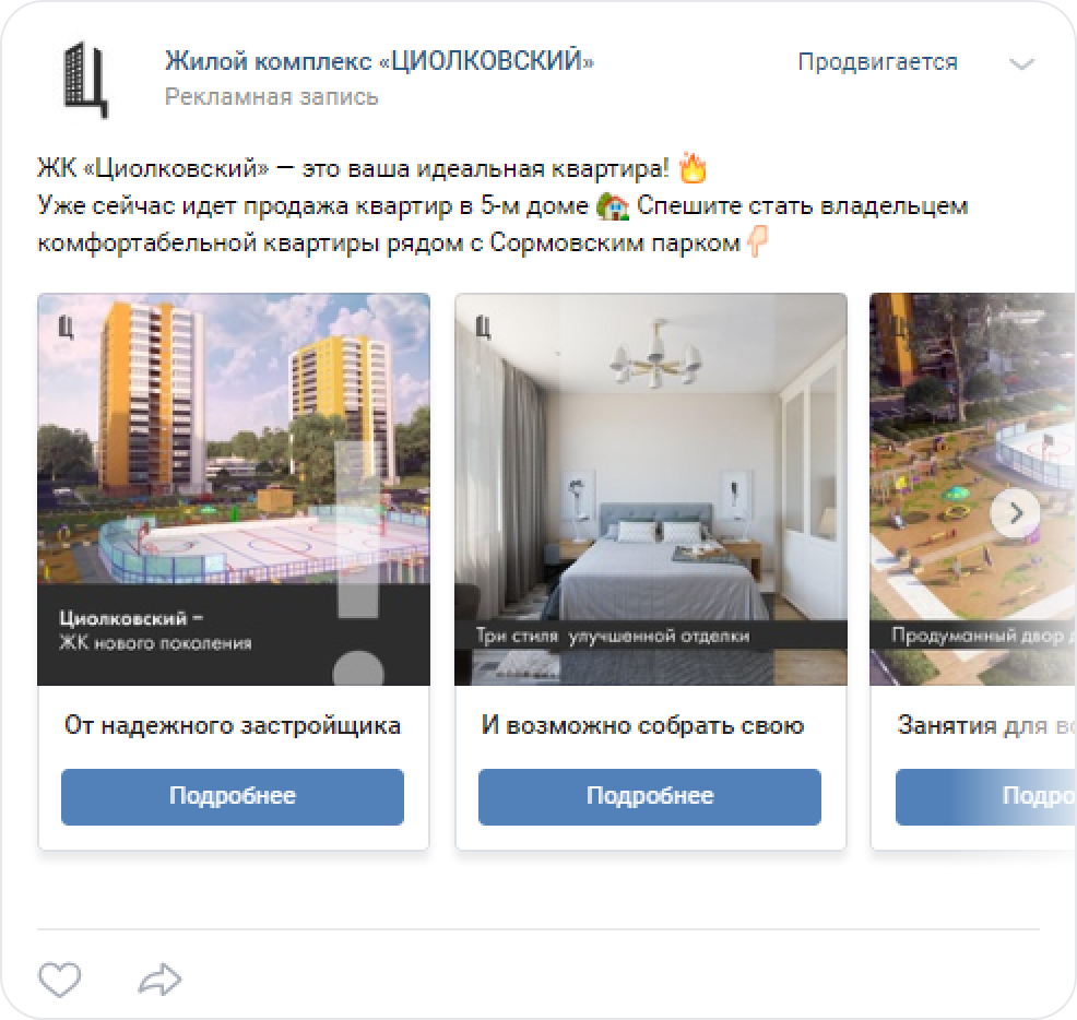 Соцсети – это масштабное поле для продвижения любого жилого комплекса. Данный анализ дал нам понять, как до нас позиционировался «Циолковский» и как это делают конкуренты.